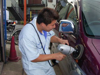 | ◇雨の日こそ快適に!ガラスの油膜は大敵 当店では販売車全車にガラス油膜取り&撥水加工をサービスしております。 市販の撥水材は後々油膜になるので要注意です。 当店は業者専門ケミカル使用で約半年効果持続します。 撥水とセットでシリコンワイパーが必要です。 作業に1時間位必要ですので御希望方はご予約お願いします。 ◇やはりボディーコーティング ボディーコーティングはポリマーとガラスコートをご提供しております。 こんなお客様に絶賛な評価頂いております。 WAXかけたり洗車する時間が余り無い。 最近輝きが無い!塗装がくすんでいる。 黒い車で手入れが大変!小傷も目立つ! 白い車で水アカが気になる。WAXしてもすぐに汚くなる。 駐車場の状況が良く無い!(木が近くにある。電車が近い。鳥が多い。) 洗っただけで綺麗にしたい! 洗車機を使用したい!(これはガラスコートのみ) ガラスコートとは塗装の表面にガラスの皮膜を付着させます。施工に約2日必要ですので完全予約制です。いずれにしても車のボディーは過酷です。ケアに時間と労力をかけるよりグラスコートをお薦めします。個人差が有りますが2〜3年効果持続します。 価格はクラウンで定価10万円ですが当店お客様は20%オフです。 ガラスコート施工 ガラスコーティングの嘘ほんと! |