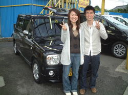 当店展示のラパンターボにひと目惚れでご購入頂いた、ご近所のご婚約中〜仲良しカップルのMさんです。3千Km走ったらオイル交換にお立ち寄り下さいね♪